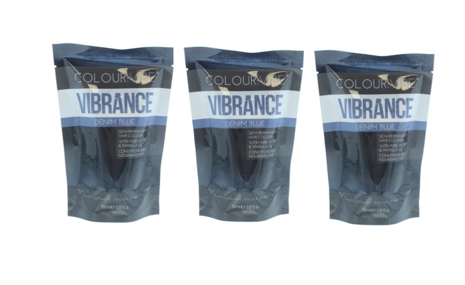 3 x COLOUR VIBE VIBRANCE SEMI PERMANENT HAIR COLOUR DYE - DENIM BLUE 150ml