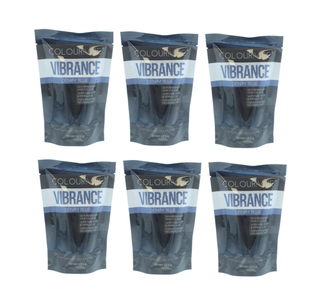 6 x COLOUR VIBE VIBRANCE SEMI PERMANENT HAIR COLOUR DYE - DENIM BLUE 150ml