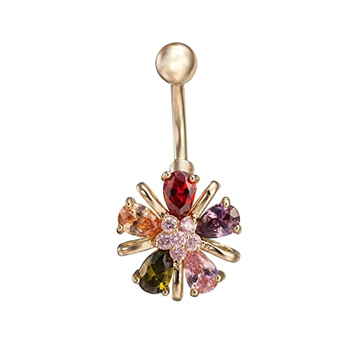 LXYQRS Belly Ring, Belly Button Piercing Dangly Belly Bar Cubic Zirconia Flower Gold Belly Bar