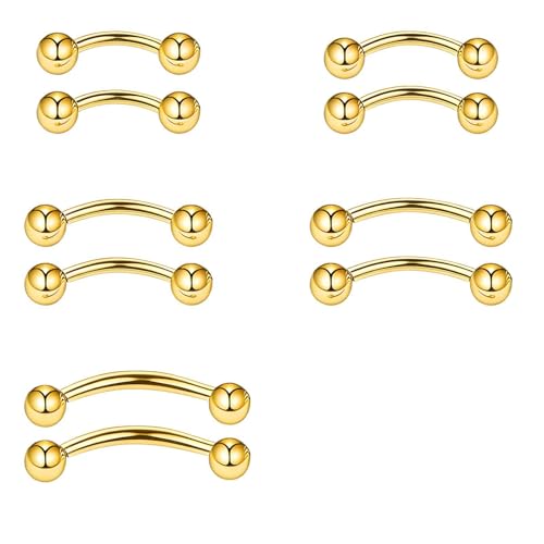 10PCS Curved Barbell Piercing Jewelry, Gold Belly Bar and Tongue Bars for Belly Button, Nipple, Rook, Lip and Daith Piercing, Belly Ring and Tongue Bar Piercings (16G 6mm 8mm 10mm)