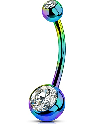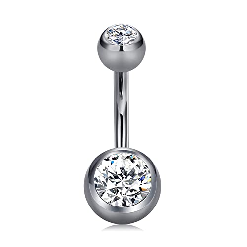CIZME G23 Titanium Belly Bar 12mm Internal Thread 14G Navel Button Ring with Crystal CZ Piercing Jewellery