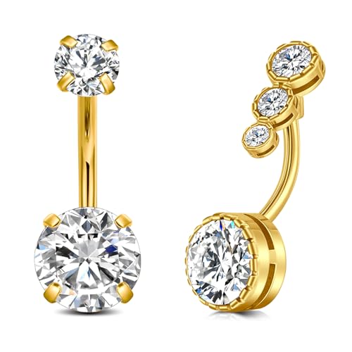 FECTAS 2pcs Belly Bar 10mm Gold Belly Button Bar Diamond Belly Ring Stainless Steel 14G Navel Bars Piercing Jewellery for Women