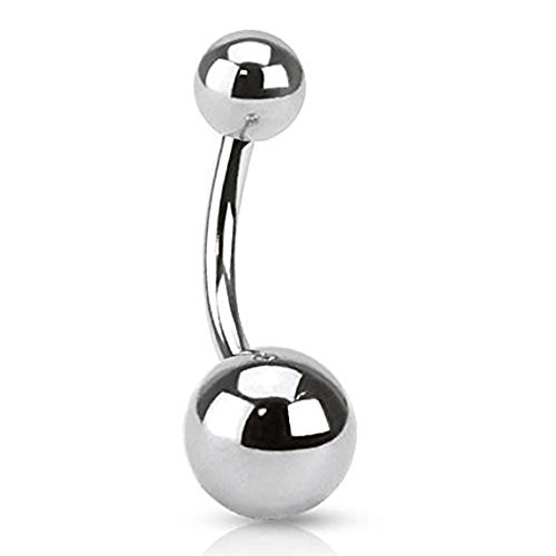 Iszie Classic Plain Belly Bar Surgical Stainless Steel Belly Button Ring Barbell Navel Bars Piercing Jewellery (Silver)