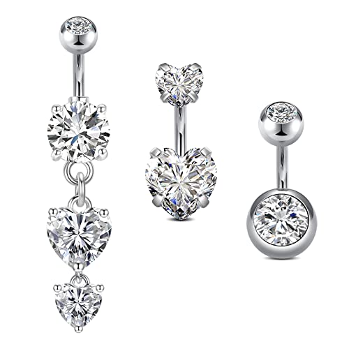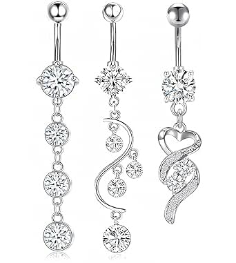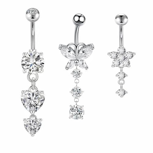 wodehaainiyibeizi 3Pcs Belly Button Bars Dangle Belly Button Rings Belly Button Rings Set Stainless Steel Belly Navel Bar Piercing Jewellery Belly Button Piercing Belly Piercing Sterling Silver