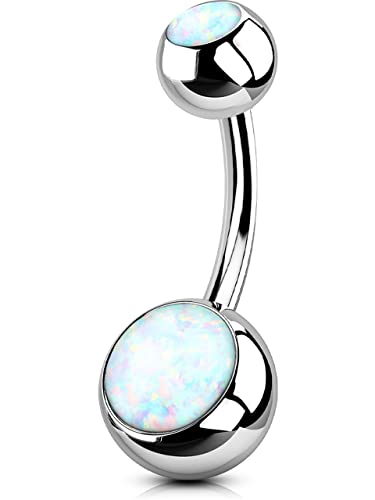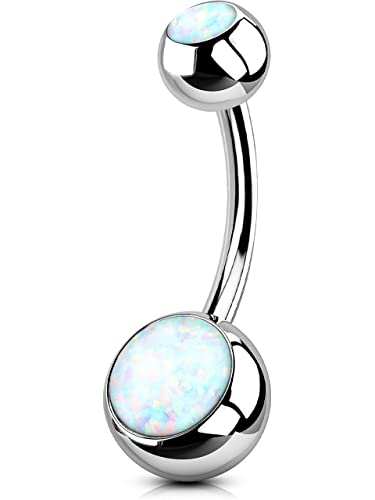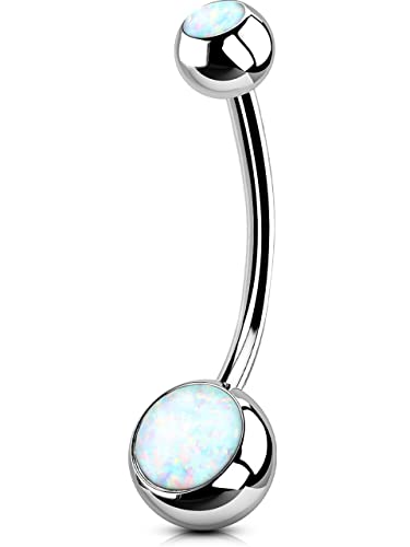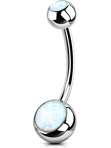 OUFER 14G Titanium Belly Bar Balls 8mm Short Bananabells Navel Piercings Rings Double White Opal 1.6mm Barbell Belly Button Jewellery