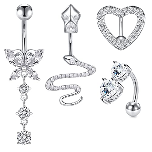 Longita 14G Belly Button Ring 10MM Bar Butterfly Belly Bars Stainless Steel Heart Reverse Belly Button Bar Navel Piercing Jewellery Silver