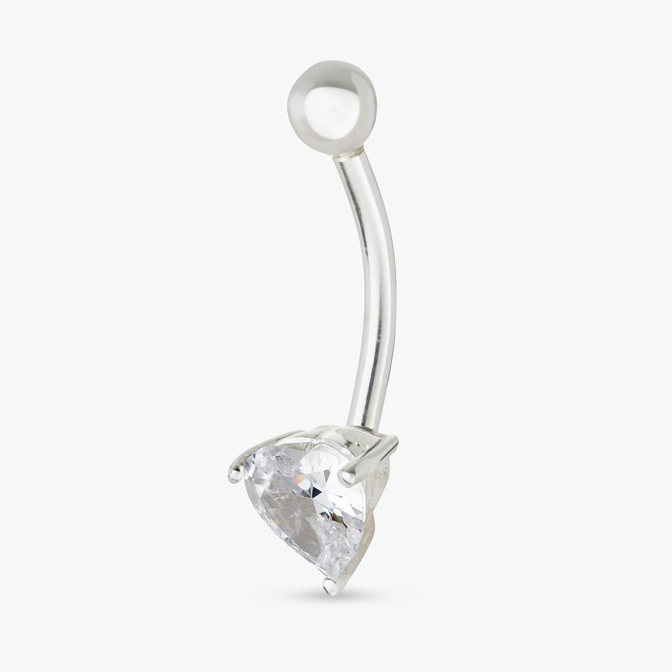 Revere Sterling Silver Heart Cubic Zirconia Belly Bar