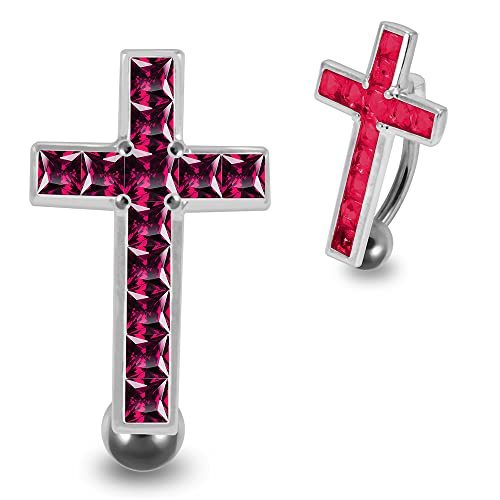 MONSTER PIERCING Red CZ Stone Movable Cross Reverse Bar 925 Sterling Silver Belly Bar Piericng