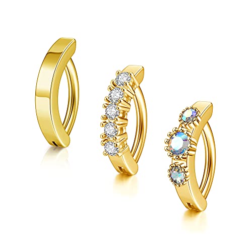 JSDDE 3pcs Stainless Steel Belly Button Bars 14G Click Navel Belly Bar Rings Reverse Curved Belly Piercing Body Jewellery Gold