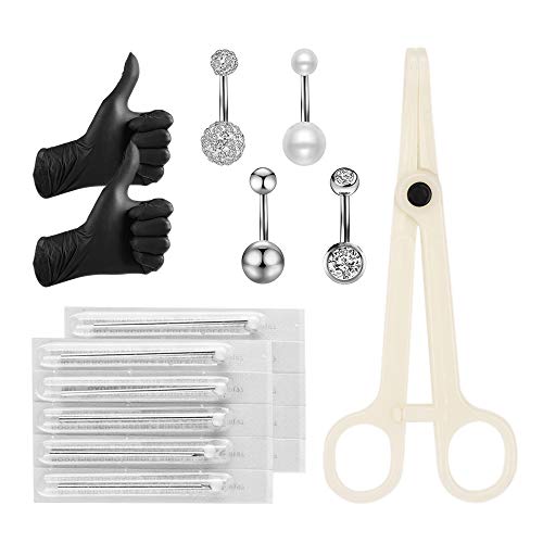 ATOMUS Piercing Set 5pcs 14G Piercing Needles 12G Stainless Steel Belly Button Bar Piercing Tweezers Jewellery Bananabells