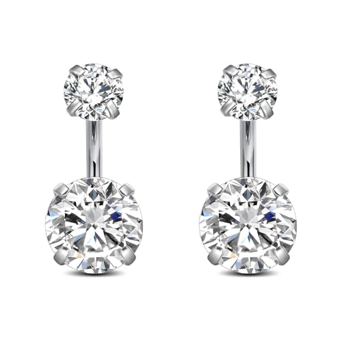 incaton 14G Belly Bar 2Pcs Button Bars Surgical Stainless Steel CZ Petite Navel Ring Piercing Jewelry Belly Button Rings Barbell 6mm