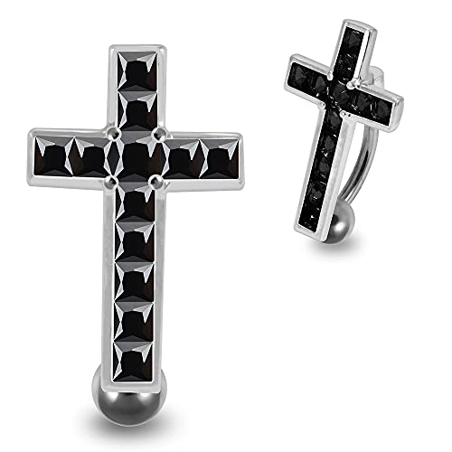 MONSTER PIERCING Black CZ Stone Movable Cross Reverse Bar 925 Sterling Silver Belly Bar Piericng