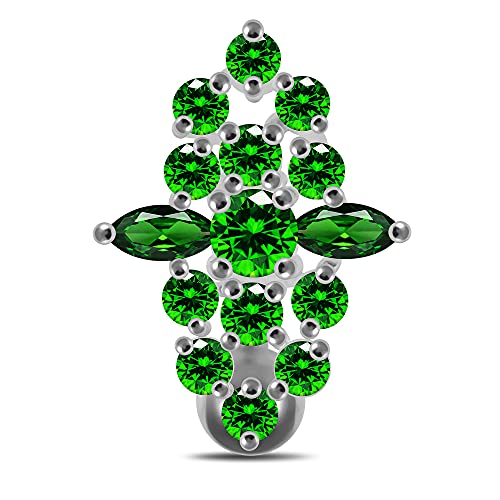 AZARIO London Dark Green Multi CZ Stone Fancy Reverse Bar Design 925 Sterling Silver Belly Bar Piercing