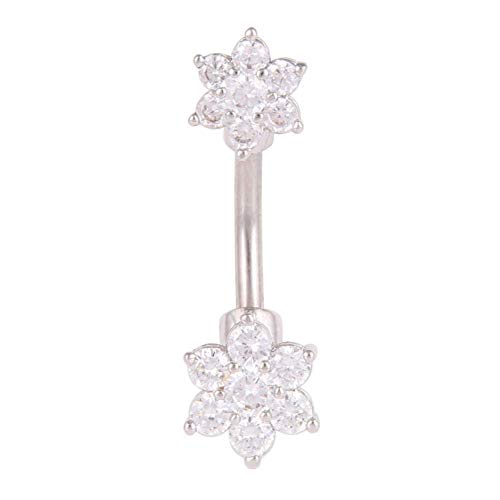 OUFER 14G 925 Belly Button Bar Sterling Silver Dangle Flower Belly Bars Navel Ring Piercings Jewellery CZ for Women Gifts Body Jewelry