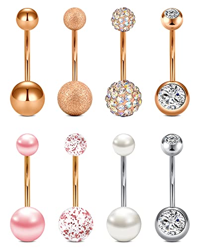 incaton 14G Belly Button Bars Surgical Stainless Steel CZ Petite Navel Ring Piercing Jewelry Belly Button Rings Select Barbell Len 8mm