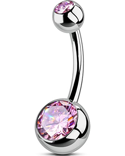 OUFER Solid Titanium Belly Bars 14G Navel Rings Grade 23 Titanium Ball Double Gems Belly Piercing Jewellery Pink