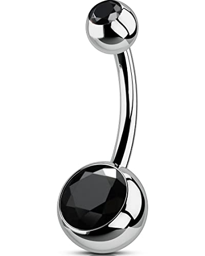 OUFER Solid Titanium Belly Bars 14G Navel Rings Grade 23 Titanium Ball Double Gems Belly Piercing Jewellery Black