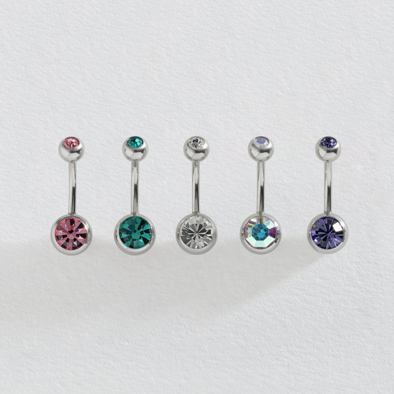 Revere Surgical Steel Crystal Belly Bars - Set of 5