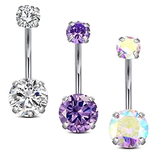 OUFER 316L Surgical Steel Belly Bars Clear CZ Belly Rings Navel Rings Belly Button Piercing Jewellery