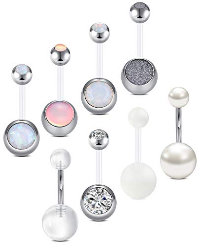 FECTAS 8PCS Belly Button Rings 14G 10mm Stainless Steel & Flexible Belly Navel Bars Banana Barbells Body Piercing Jewellery
