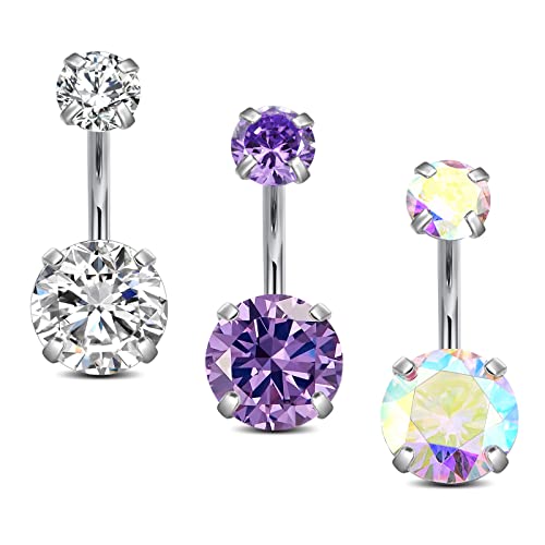 OUFER 14G Belly Bars 8/12/14mm Clear CZ Belly Rings Navel Rings 316L Surgical Steel Belly Piercing Jewellery Women Gift
