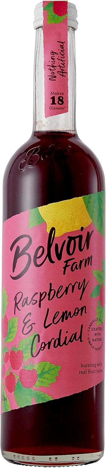 Belvoir Farm Raspberry & Lemon Cordial - Real Pressed Raspberries | Freshly Squeezed Lemon Juice | Traditional Family Recipe | 100% Natural Ingredients | Suitable for Vegetarians - 6 x 500ml Bottles