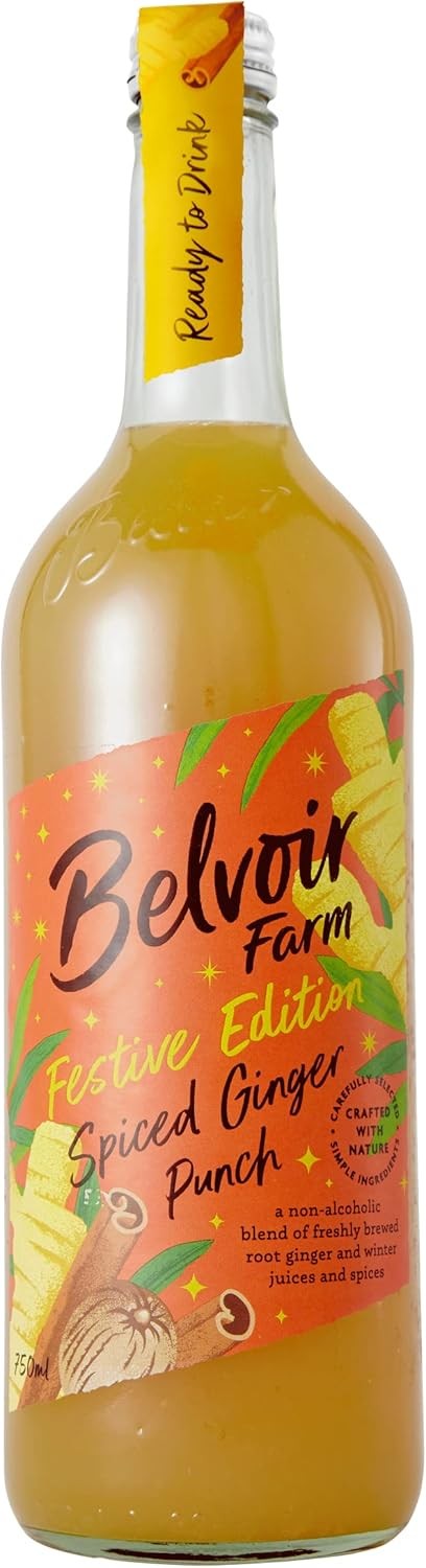 Belvoir Farm Festive Edition Spiced Ginger Punch - Root Ginger with Fruit Juices & Cinnamon, Cloves & Nutmeg Spices | 100% Natural Ingredients | Suitable for Vegetarians & Vegans - 6 x 750ml Bottles