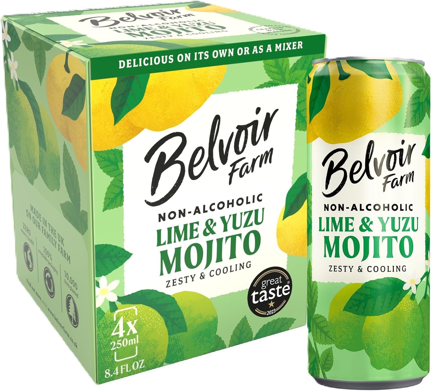 Belvoir Farm - Non-Alcoholic Lime & Yuzu Mojito, Zesty and Cooling, Freshly Squeezed Lime, Crafted with Nature, No Artificial Sweeteners & Preservatives, Suitable for Vegetarians & Vegans 24x250ml
