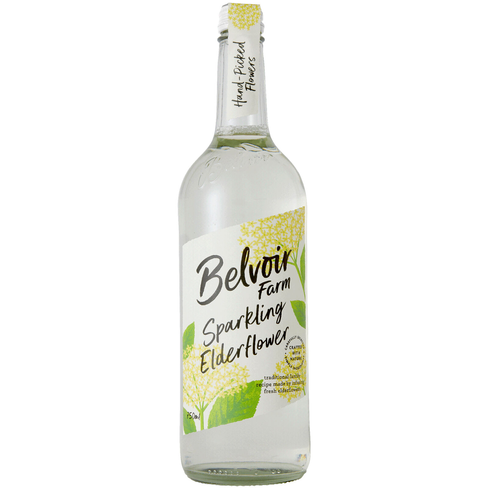 Belvoir Farm Lighter Sparkling Elderflower - Hand Picked Elderflowers | 30% Less Sugar only 50 Calories | 100% Natural Ingredients | Suitable for Vegetarians & Vegans - 6 x 750ml Bottles