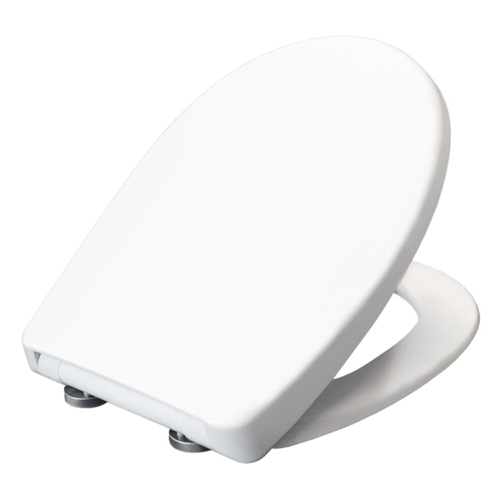 Slim D-Shape Soft Close Toilet Seat - Universal White Duroplast Seat with Quick Release Top Fixing Hinges for Easy Cleaning