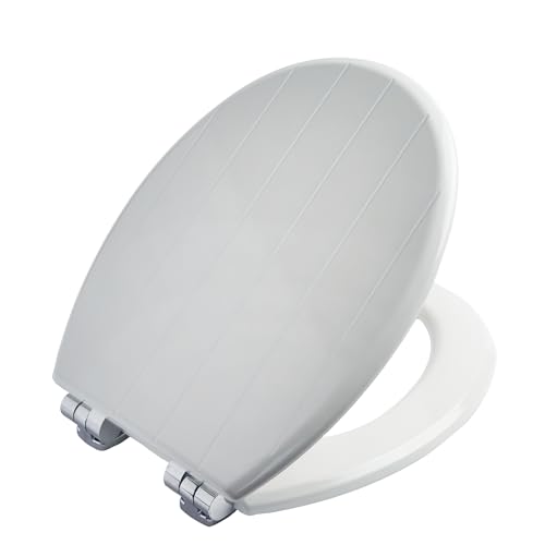 BEMIS Chicago Ultra-Fix White Toilet Seat. Soft Close Toilet Seat with Easy Lift Chrome Plated Hinges. Wooden Material for Easy Clean, Universal & Easy Installation, White
