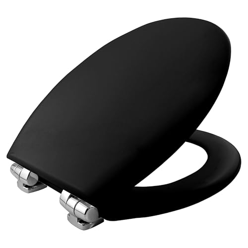 BEMIS New York Ultra-Fix Soft Close Toilet Seat. Wooden Toilet Seat with Water Based Paint for Easy Clean with Chrome Hinges, Universal & Easy Installation, Black
