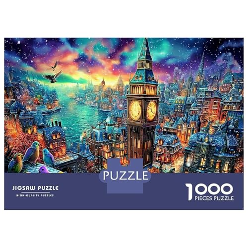 Paris Clock Tower 1000 Piece Jigsaw Puzzles Big Ben in Fantasy Art Birthday Gifts Couple Art Challenge Toy Gifts Family Game for Adults And Kids 70x50cm/1000pcs