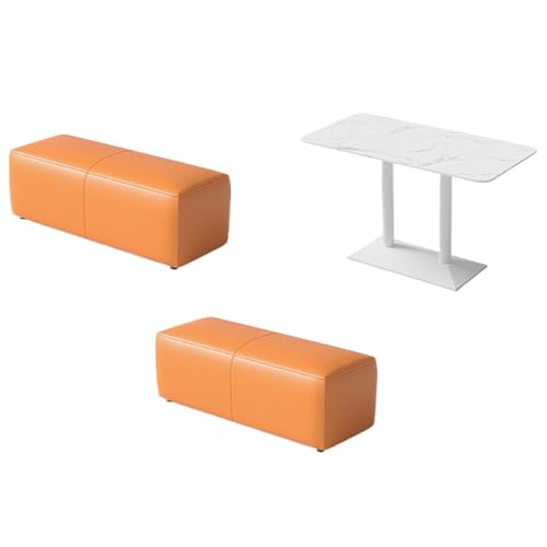 KIBONCY Modern Premium Upholstered Booth Seating Ottoman Bench Acrylic Chair Marble Table Set For Cafe Restaurant Bistro Dessert Shop Space-Saving Easy-Clean Furniture(F)