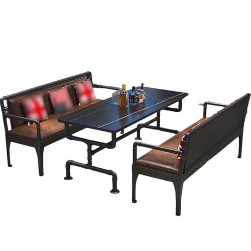 KIBONCY Modern Industrial Cafe Bench And Table Set, Stainless Steel Long Booth Sofa For Milk Tea Shop, Sleek Restaurant Seating, Commercial Bar Lounge Furniture(D)