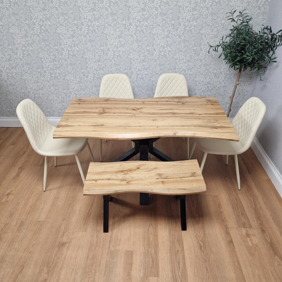 KOSY KOALA Modern Dining Table with 4 Cream Chairs and 1 Bench Dining Table Set for Kitchen and Dining Room