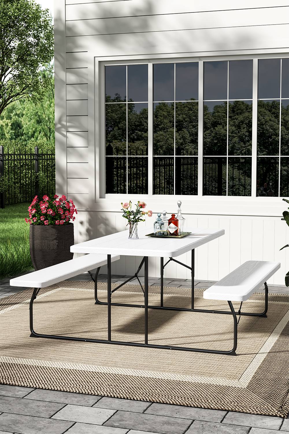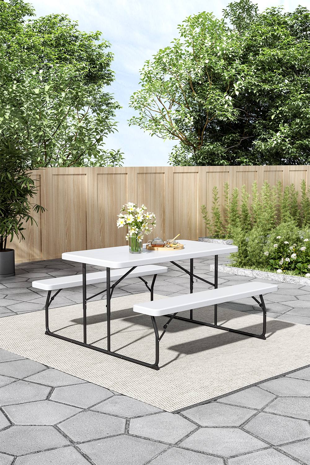 Living and Home Foldable Outdoor Picnic Table and Bench Set in White