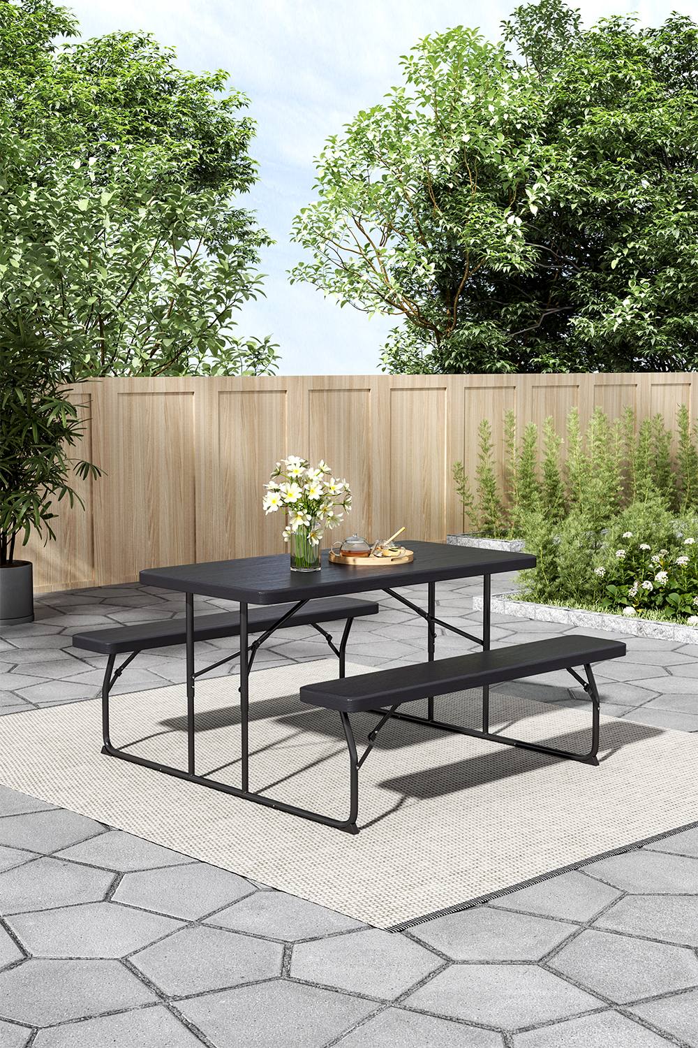 Living and Home Outdoor Foldable Picnic Table and Bench Set in Black