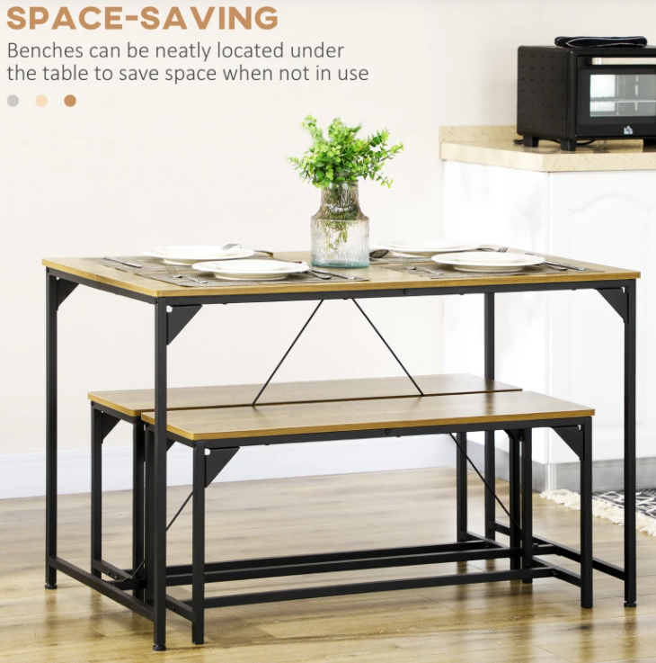 Dining Table and Chairs Set Rustic Bench 4 Seat Industrial Kitchen Space Saving