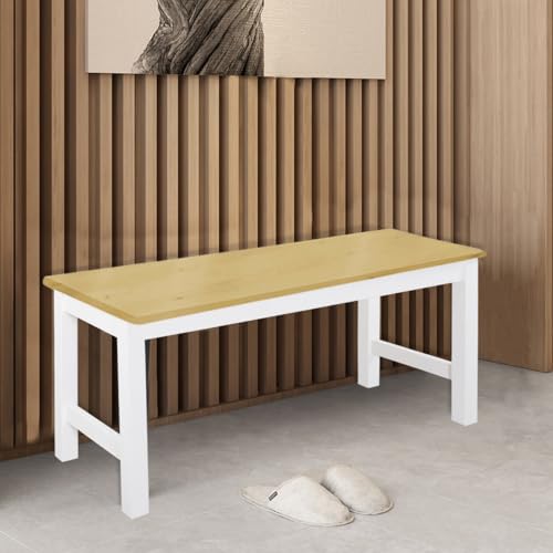BTGGG Wooden Dining Room Table Bench, 90cm x 35cm x 45cm Indoor Dining Bench for Home Kitchen Living Room Bedroom Hallway Doorway, Natural with White Frame