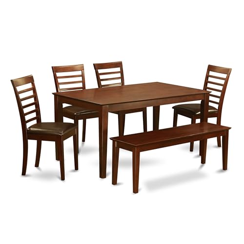 East West Furniture CAML6C-MAH-LC 6 Piece Dining Table Set Contains a Rectangle Dining Room Table and 4 Faux Leather Upholstered Chairs with a Bench, 36x60 Inch, Mahogany