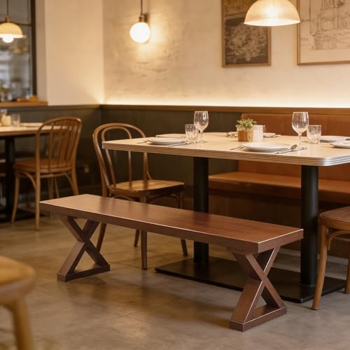 Entryway Bench for Dining Room Table, Shoe Changing Benchs, with X-shape Sturdy Base, Natural Wood Grain Fine Polishing, for Home Hotel(Brown,160cm/63in)
