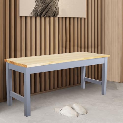 BTGGG Wooden Dining Room Table Bench, 90cm x 35cm x 45cm Indoor Dining Bench for Home Kitchen Living Room Bedroom Hallway Doorway, Grey with White Frame