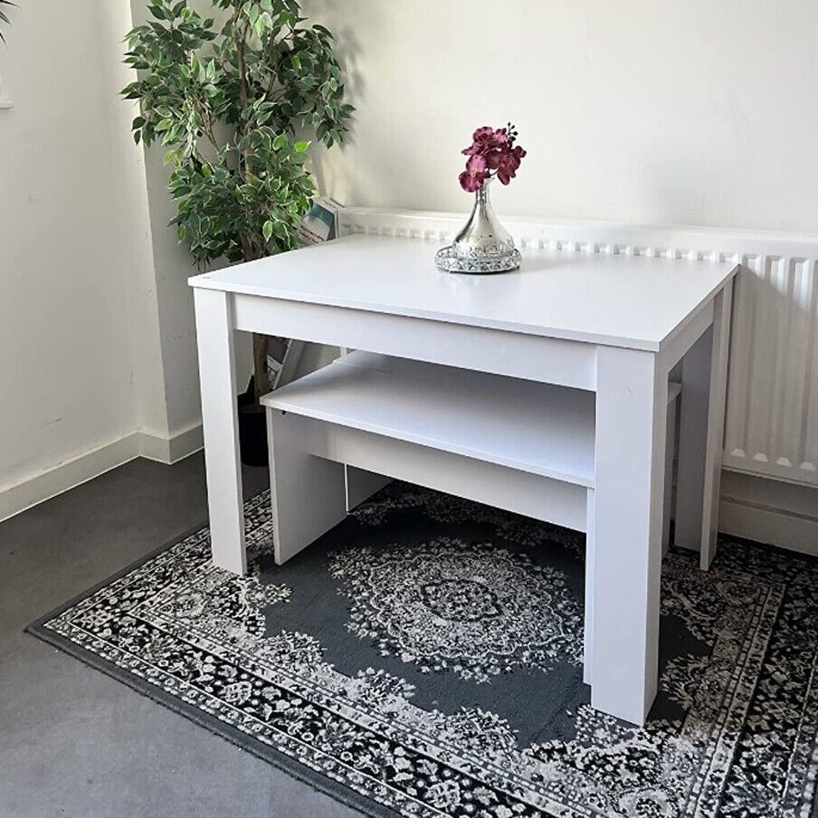 Dining Table And Bench Set Home Breakfast Kitchen Room Furniture Modern White