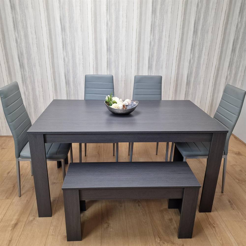 Kosy Koala Dining Table Set with 4 Chairs and a Bench Dining Room and Kitchen table set of 4 in Grey | Size: 140cm x 80cm