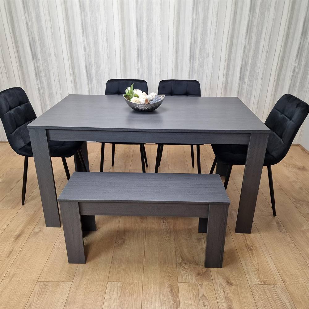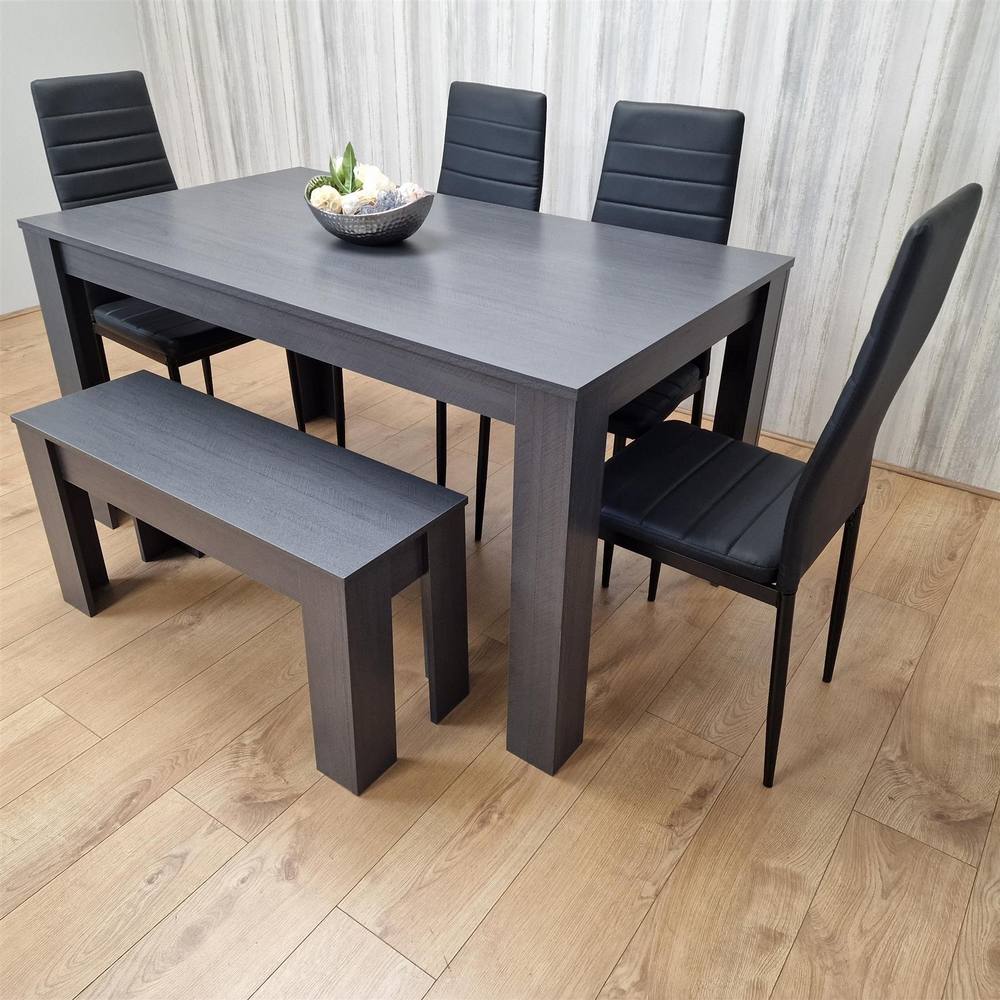 KOSY KOALA Dining Table Set with 4 Chairs and a Bench Dining Room and Kitchen table set of 4 in Dark Grey | Size: 140cm x 80cm