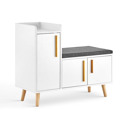 SoBuy® FSR37-W, Hallway Shoe Cabinet Shoe Rack, Shoe Storage Bench with Removable Seat Cushion