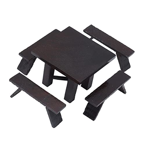 Cryfokt 1:12 Dollhouse Wooden Dining Table Set Elegant Miniature Furniture for Doll House Decoration, Blackwood Material for Girls 3+ Years Old, Table Bench Mini Set