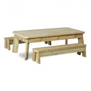 Churnet Ergo Table Bench Set Sits 6, wooden garden dining furniture
