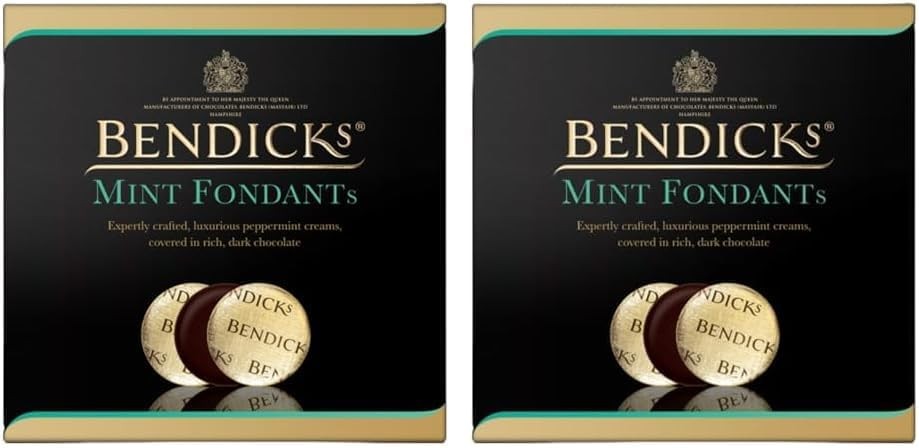 Bendicks Dark Chocolate Mint Fondants, Smooth Fondant Centres Coated in Dark Chocolate, Vegan, 180 g (Pack of 2)